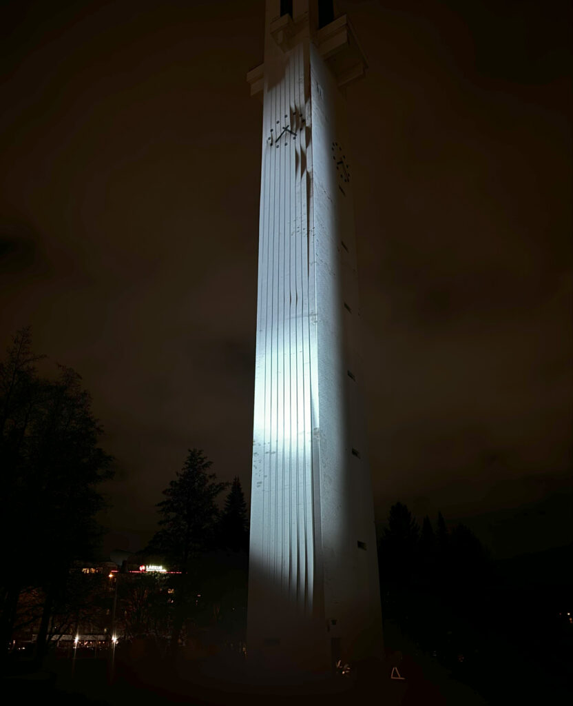 “Inspired by the recent successes of spaceflight companies, the Oulu Cathedral is being transformed into a launch platform. The work projects the traveler into a dreamlike state, where the vision of truth has changed, and the destination is no longer a given.